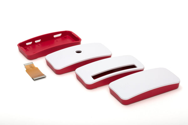 The Official Raspberry Pi Zero W Case comes in the same stunning red and white as the full-sized case for the Raspberry Pi 3 . It is made from the same tough plastic and again features the Raspberry Pi logo etched into the lids. Did I say lids? Well, this case comes with three white lids: